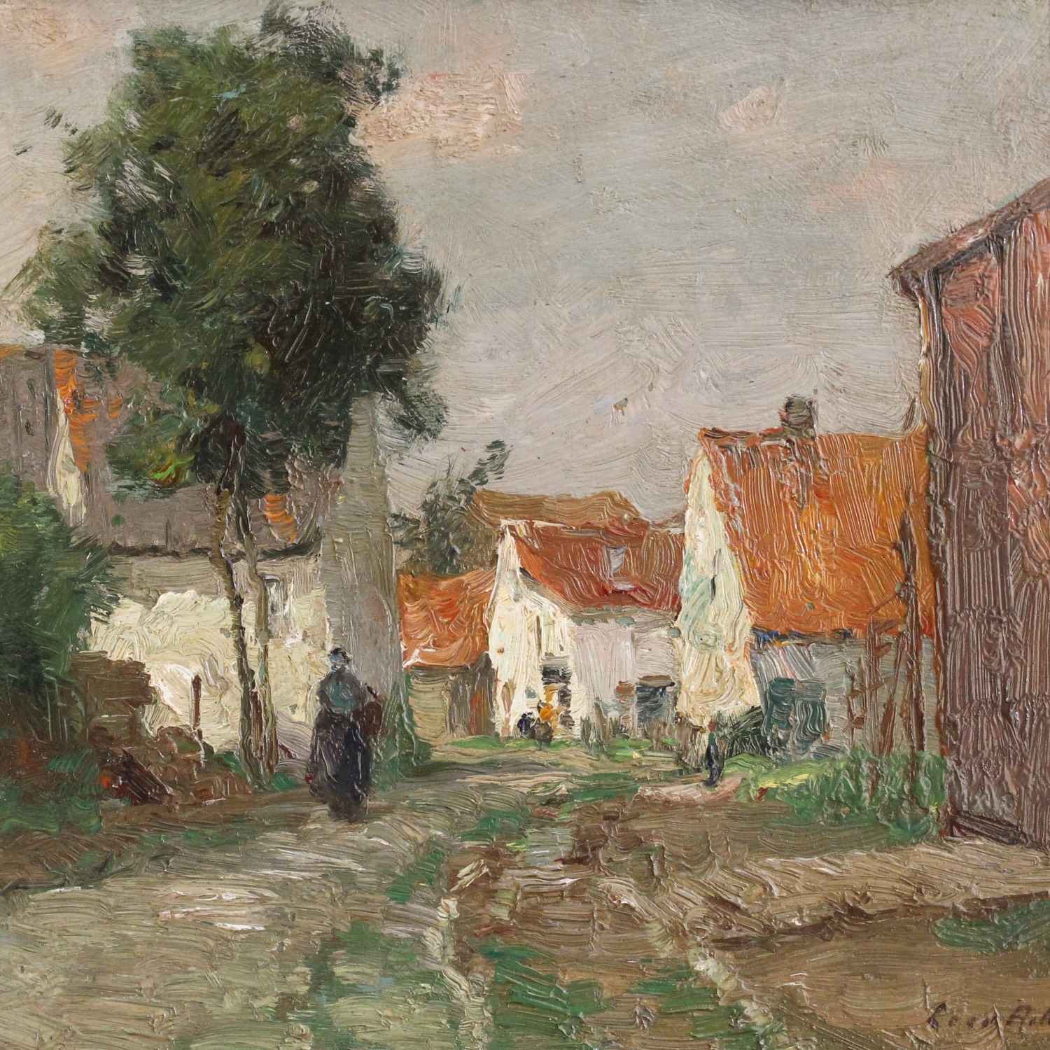Leon Riket, Village View, Original Antique Impressionist Oil Painting