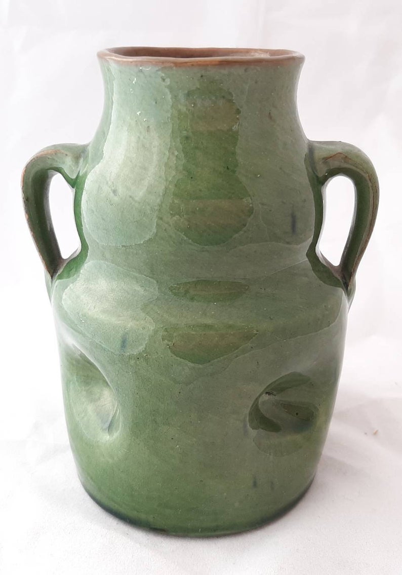Liberty & Co Art Nouveau Twin Handled Vase in Green, Antique Vase made by Brannam Pottery c.1900