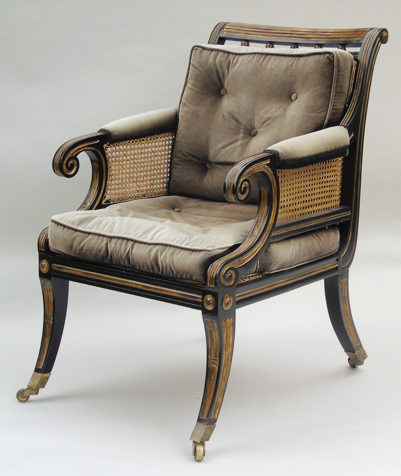 Library Bergere Chair Ebonised & Parcel Gilt c.1930