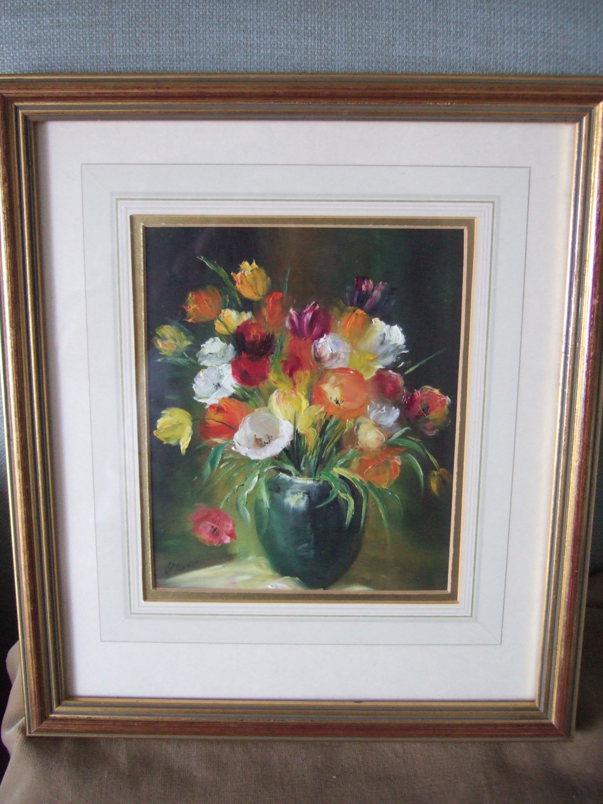 Lillias Blackie Oil on Board 'Vase of Tulips' (1 of 3)