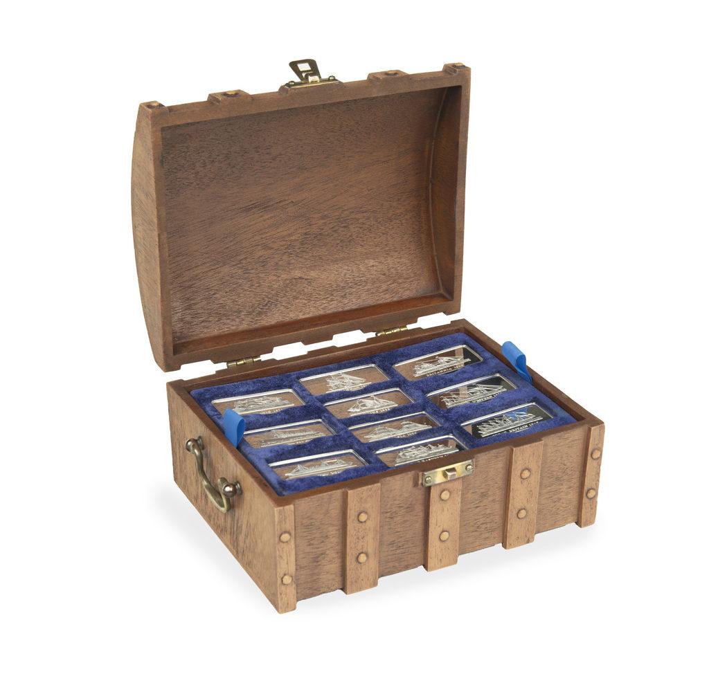 Limited Edition Boxed Set of 20 Sterling Silver Ingots of Great Liners Including Titanic & Queen Elizabeth, Birmingham, 1977