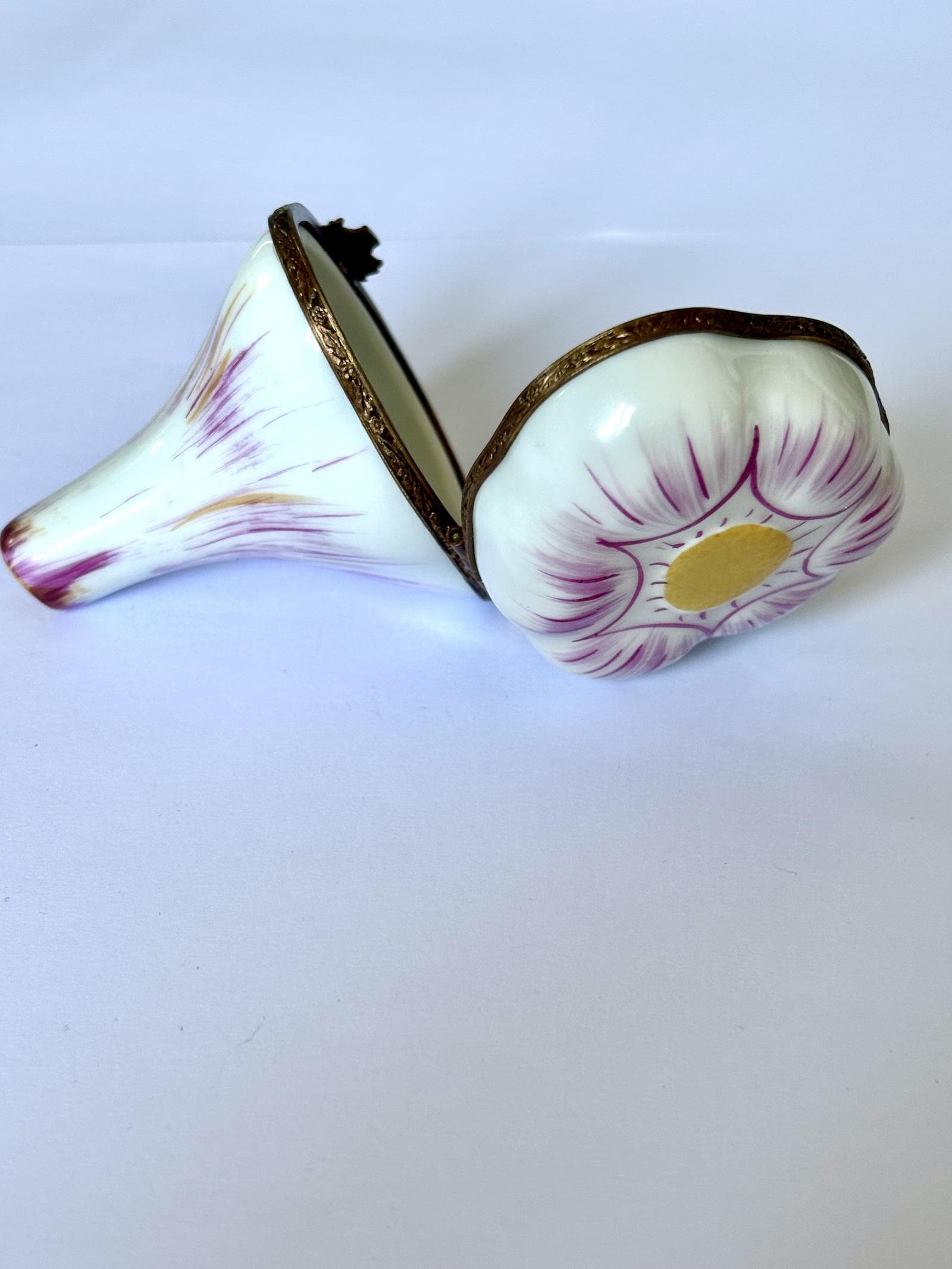 Limoges France Hand Painted GARLIC Trinket Pill Box with Basket of Flowers Clasp