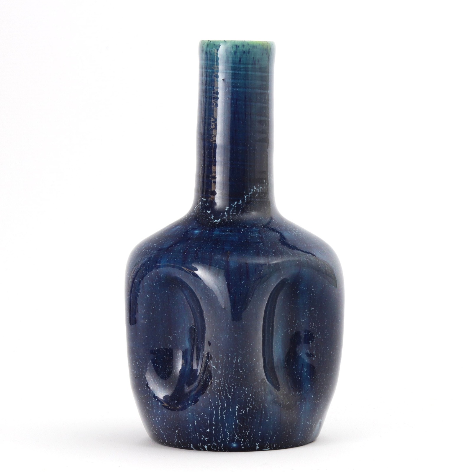 Linthorpe Pottery Blue Streaked Dimpled Bottle Vase C.1885 (1 of 1)