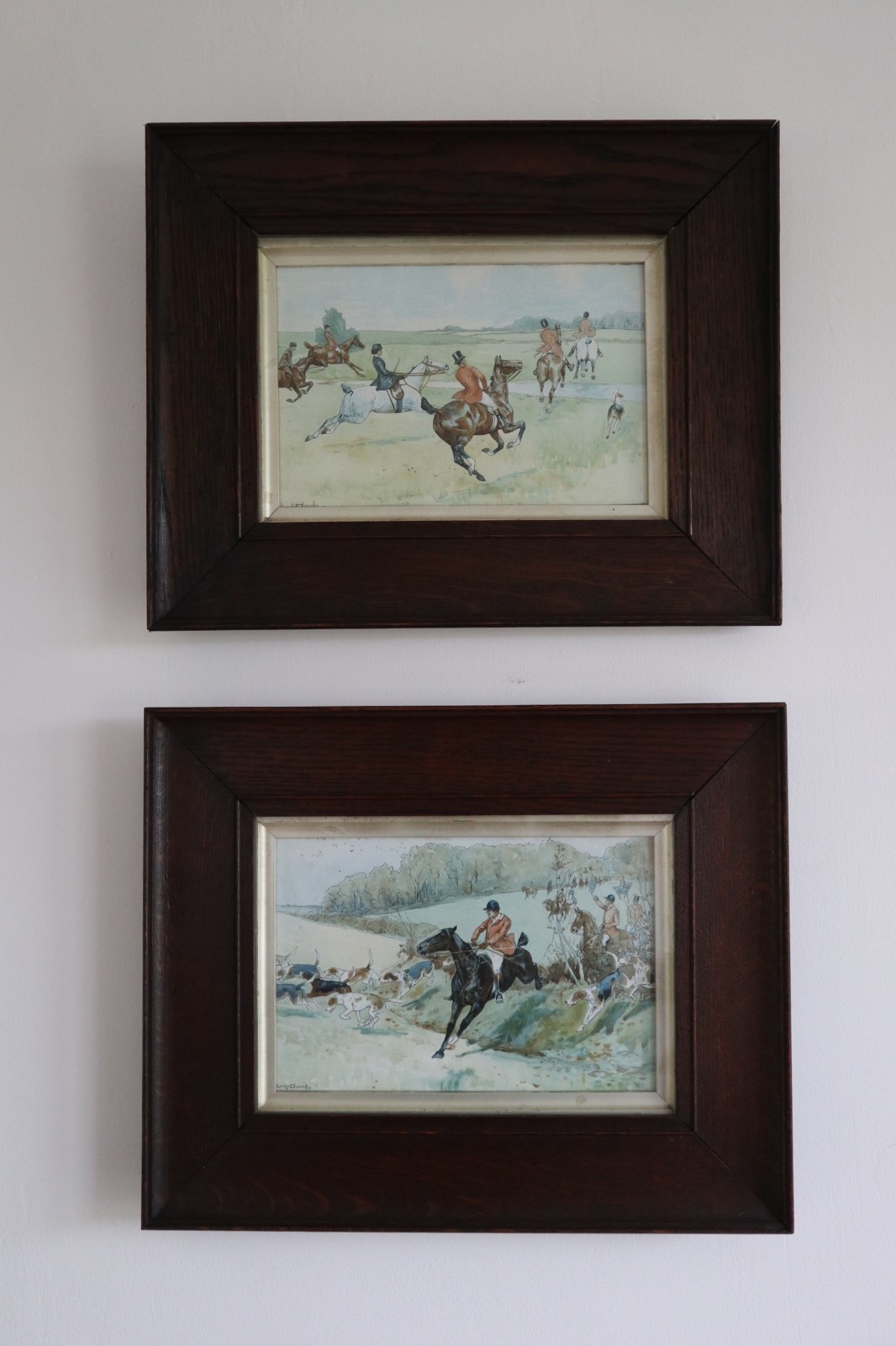 Lionel Edwards Prints of Hunting & Hounds Scenes, Arts & Crafts, Dark Oak Framed circa 1925.