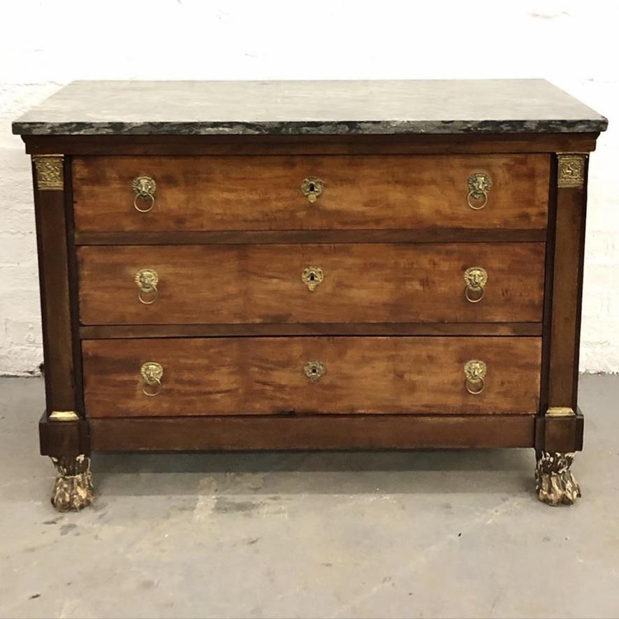 Lions paw French Empire marble top chest of drawers