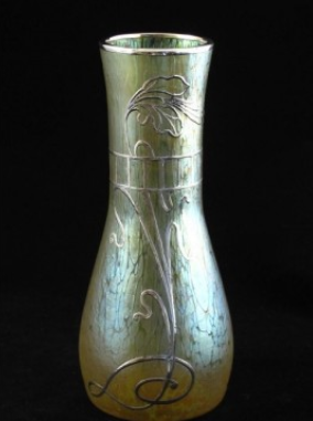 Loetz Candia Papillon Vase with Silver Overlay c.1900