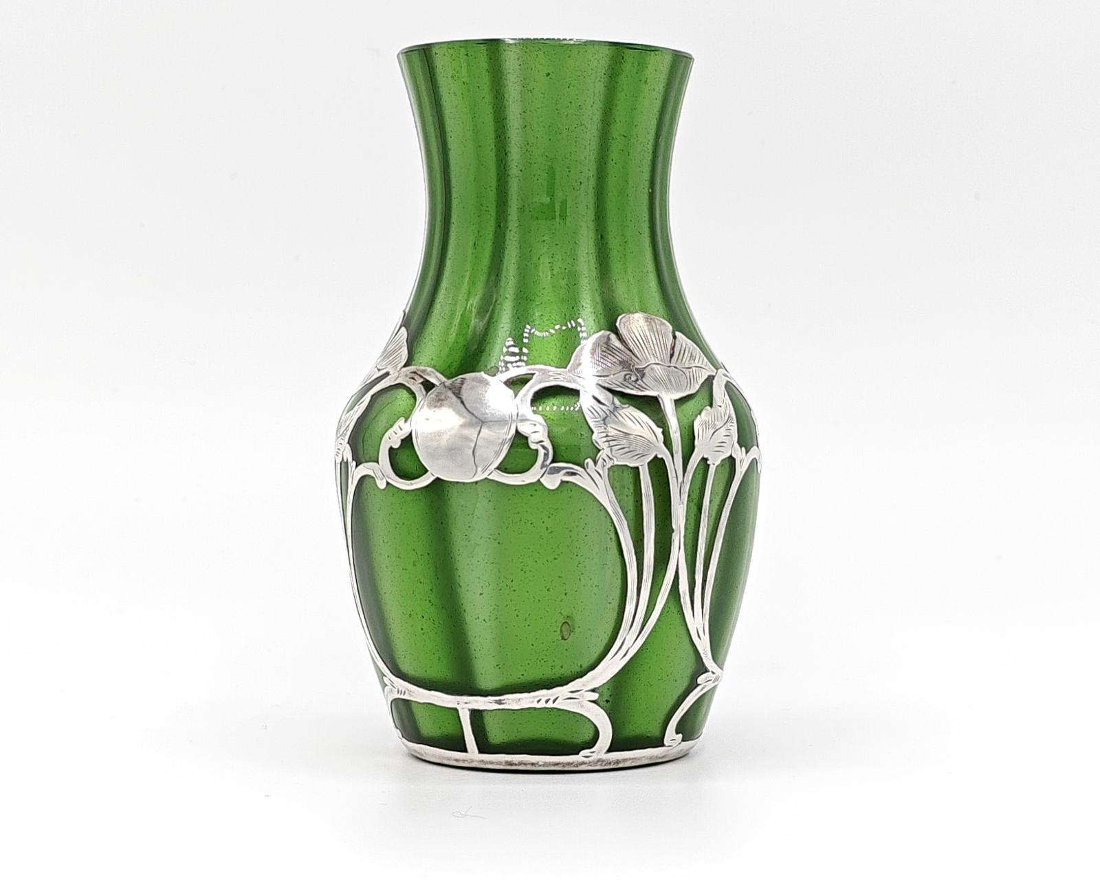Loetz Green Metallin Silver Overlay Vase c.1905