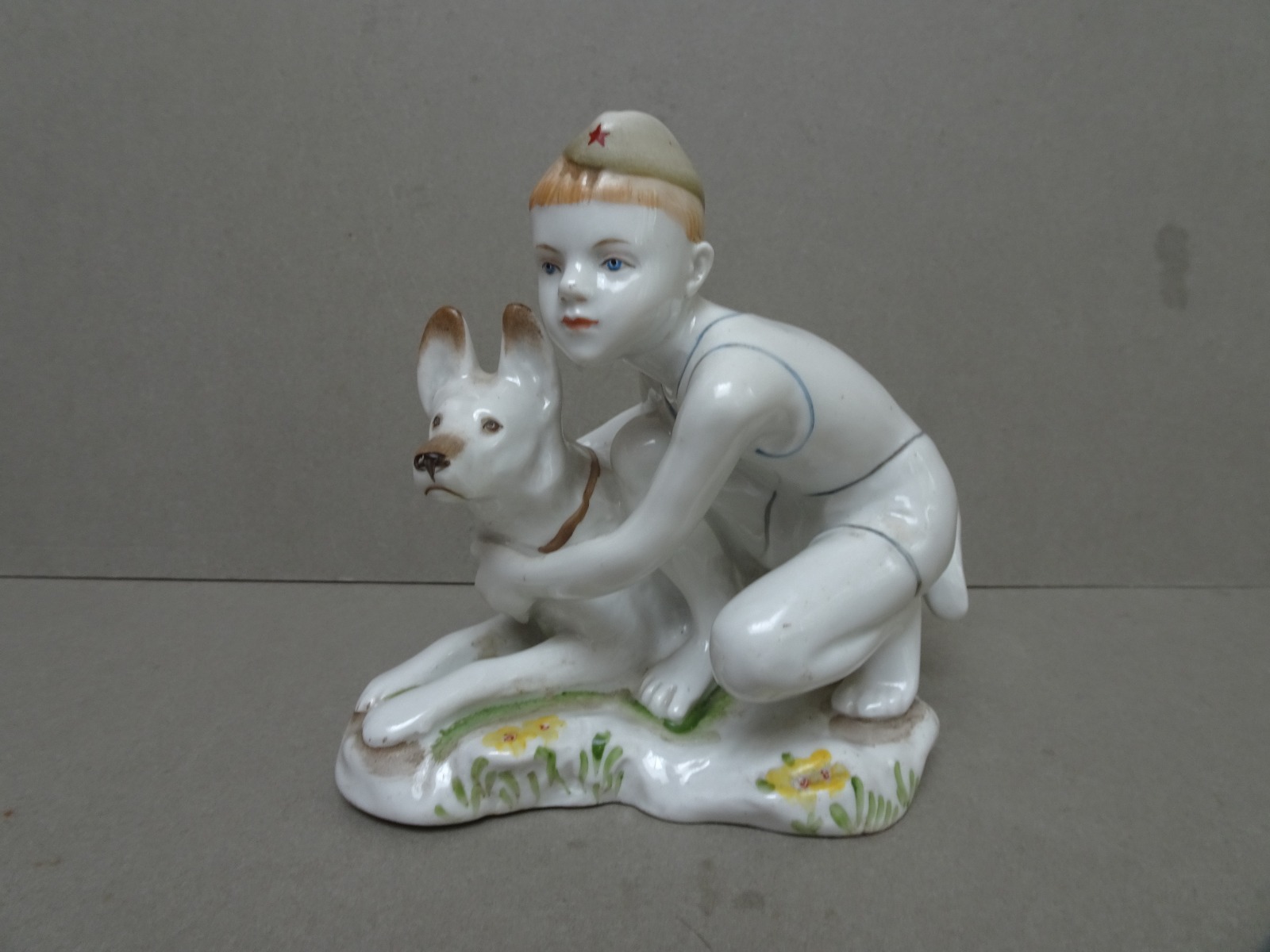 Lomonosov Scout 'or Border Guard' with a Dog. G Stolbova