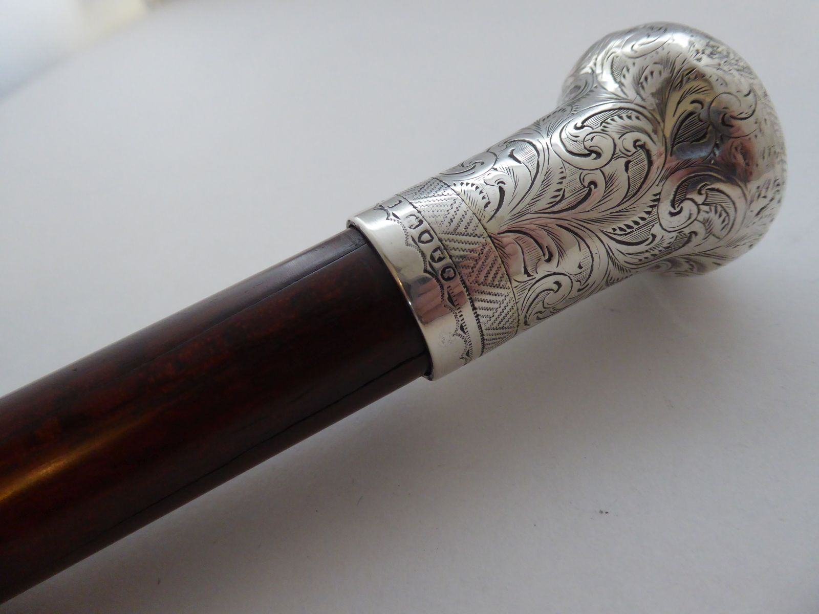London 1885 Walking Stick Cane Hallmarked Solid Silver Pommel Snakewood Shaft