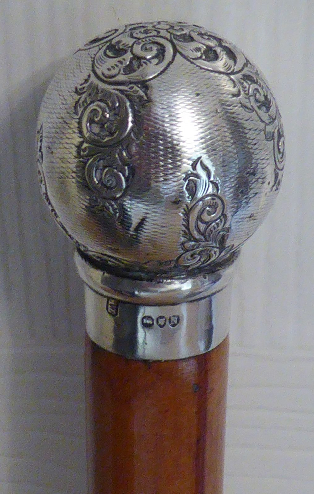 London 1888 Walking Stick Cane Hallmarked Solid Silver Pommel Malacca Shaft