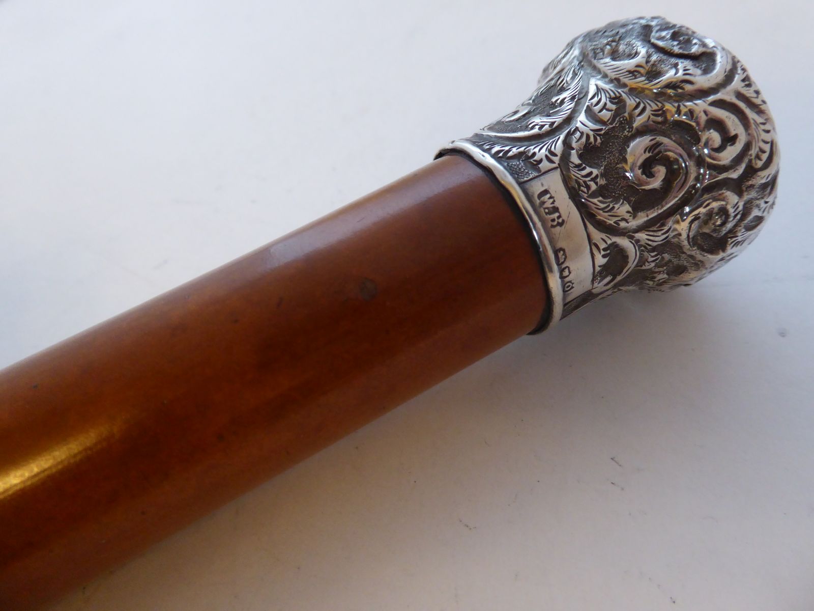 London 1891 Walking Stick Cane Hallmarked Solid Silver Pommel Malacca Shaft
