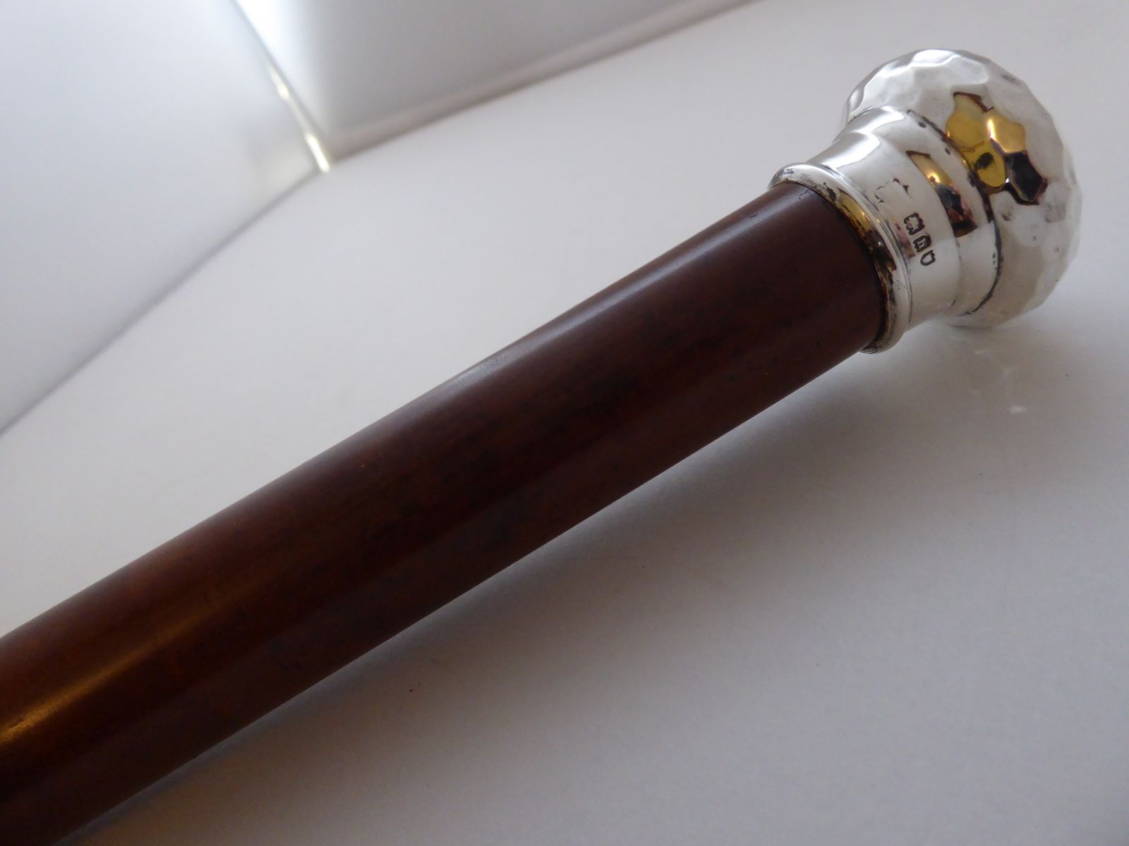 London 1903 Walking Stick Cane Hallmarked Solid Silver Pommel Malacca Shaft