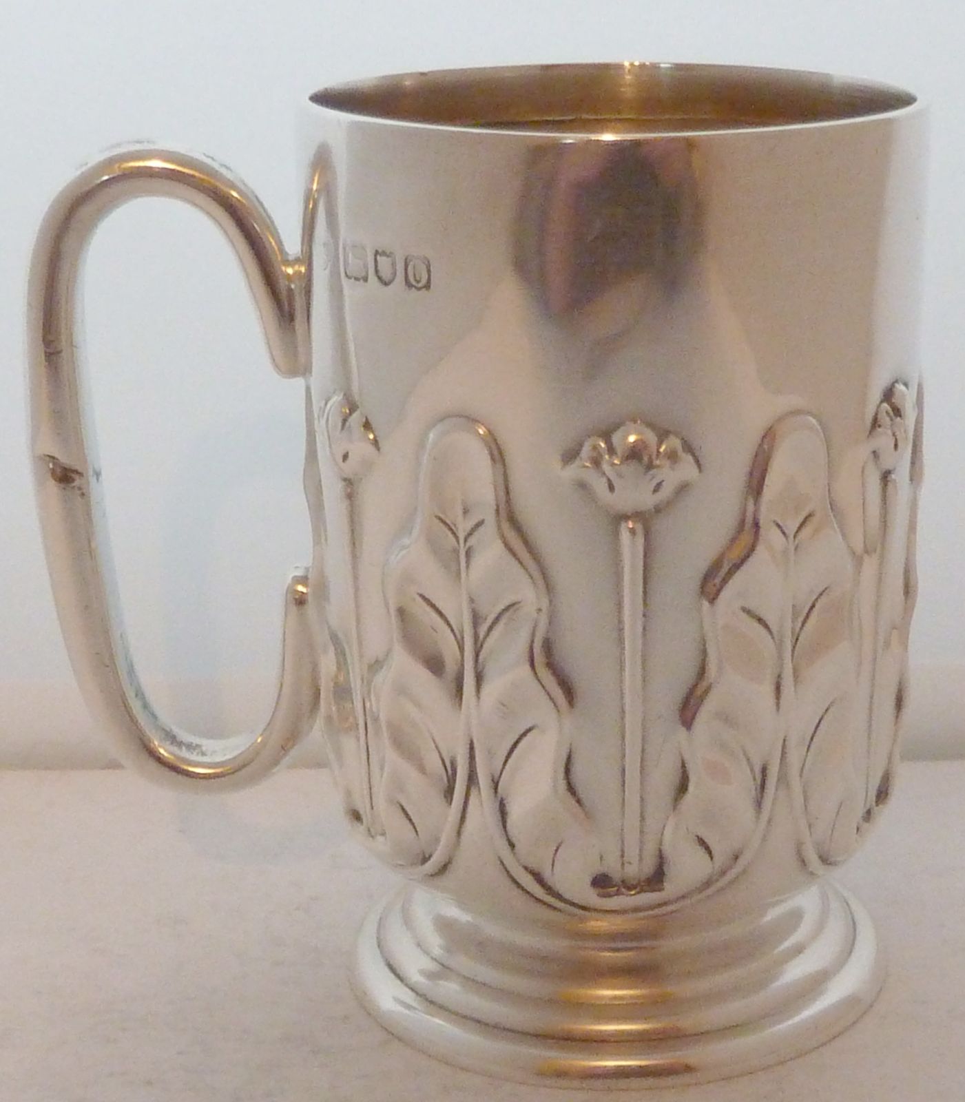 London 1909 Art Nouveau Hallmarked Solid Silver Christening Mug Tankard