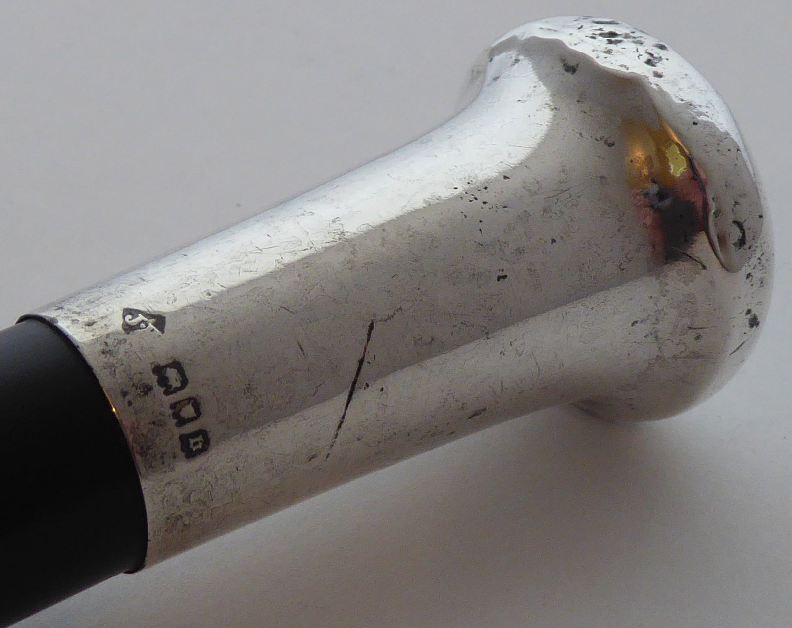 London 1917 Walking Stick Cane Hallmarked Solid Silver Pommel Ebony Wood Shaft