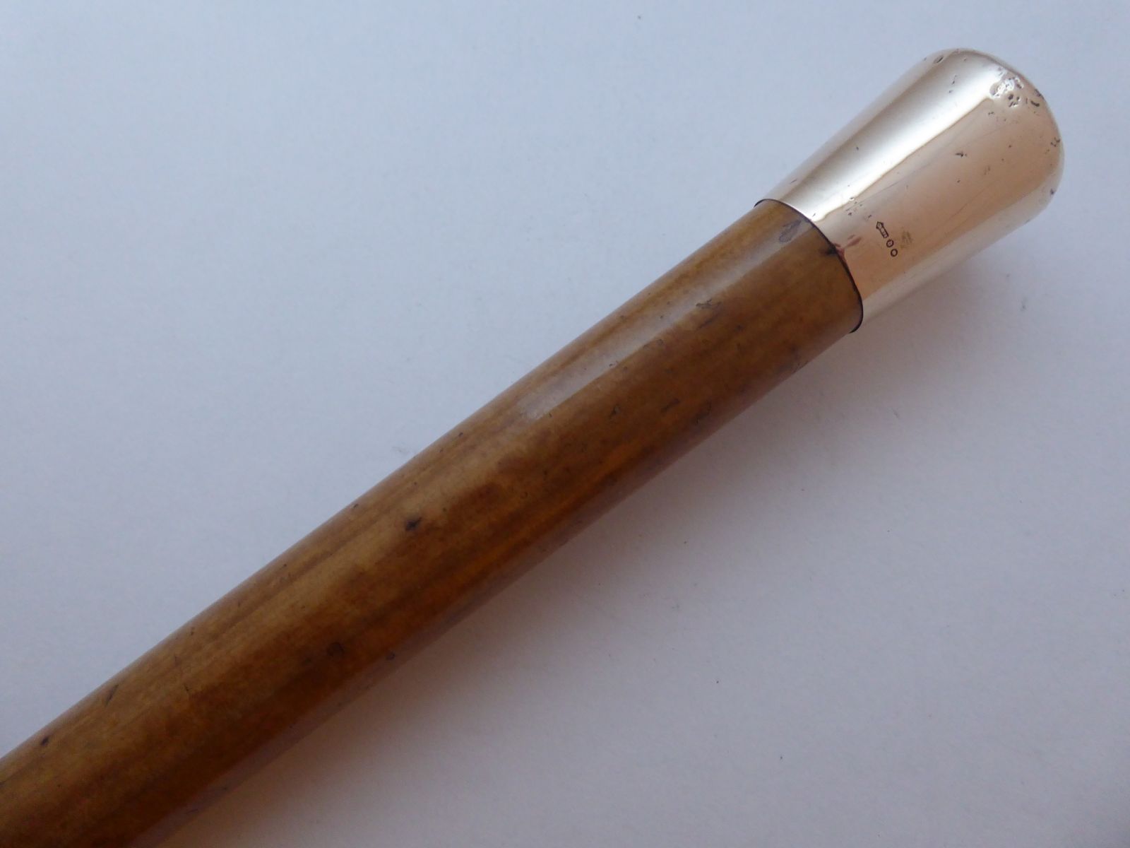 London 1919 Walking Stick Cane Hallmarked 9ct Rose Gold Pommel Malacca Shaft