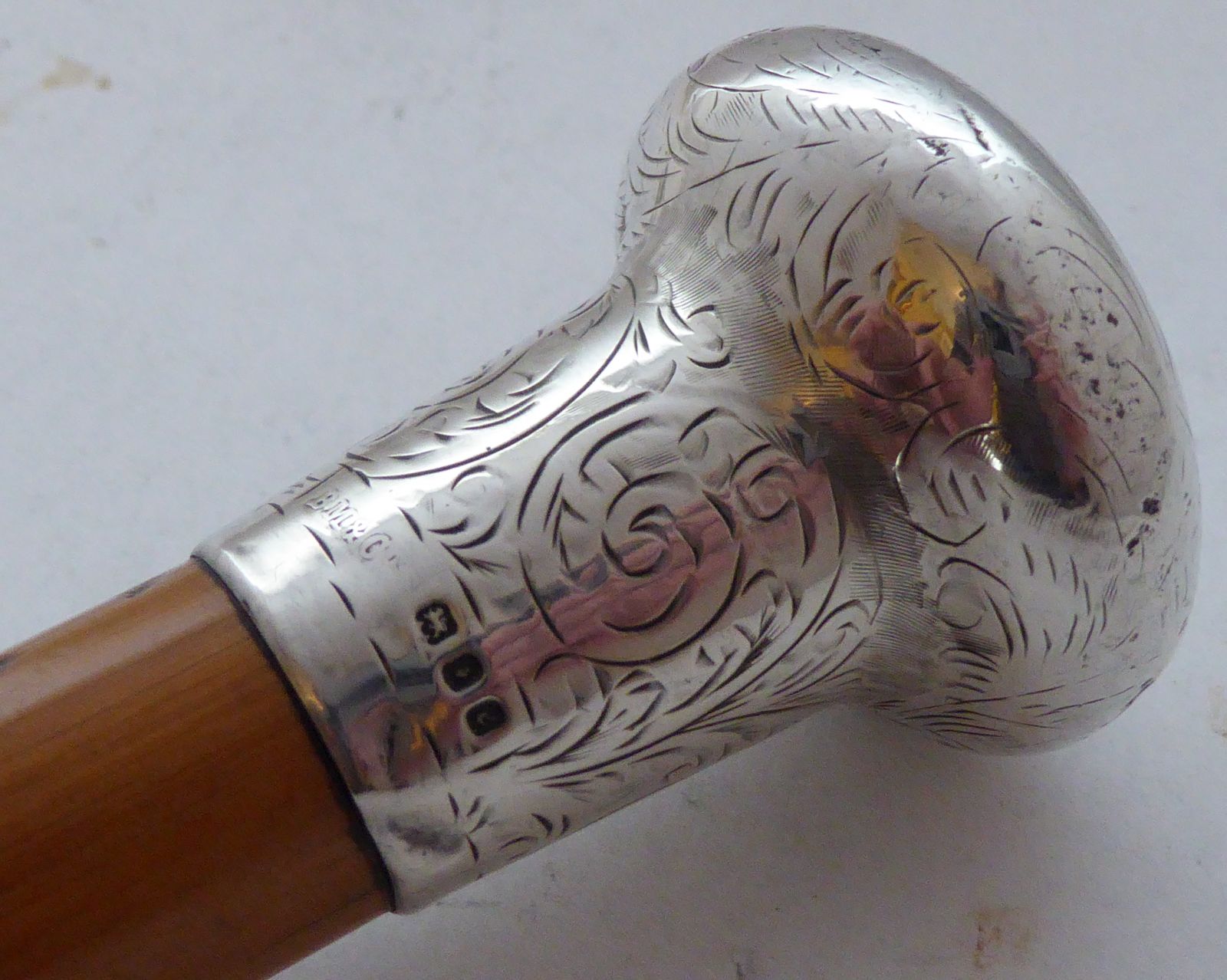 London 1920 Walking Stick Cane Hallmarked Solid Silver Pommel Bamboo Shaft