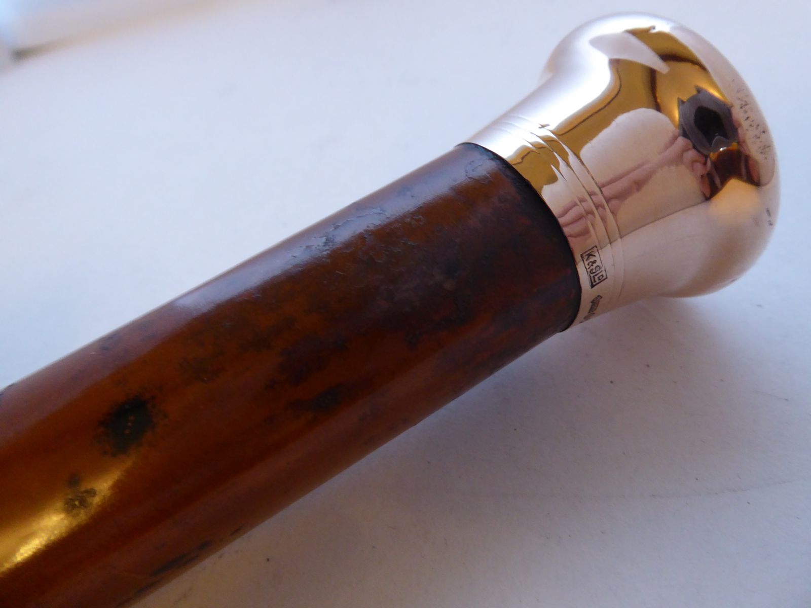 London 1922 Walking Stick Cane Hallmarked 9ct Rose Gold Pommel Malacca Shaft