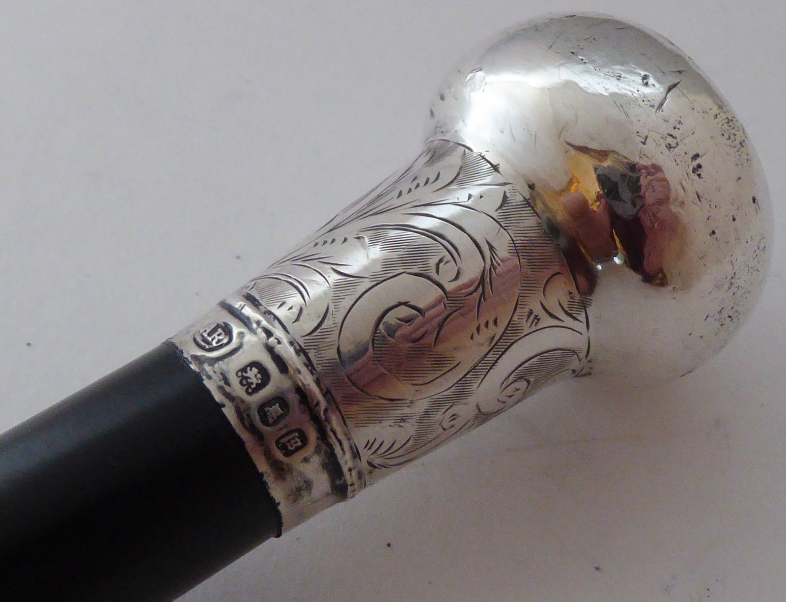 London 1922 Walking Stick Cane Hallmarked Solid Silver Pommel Ebony Wood Shaft