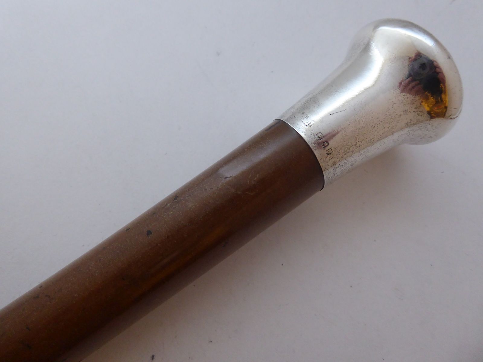 London 1922 Walking Stick Cane Hallmarked Solid Silver Pommel Malacca Shaft