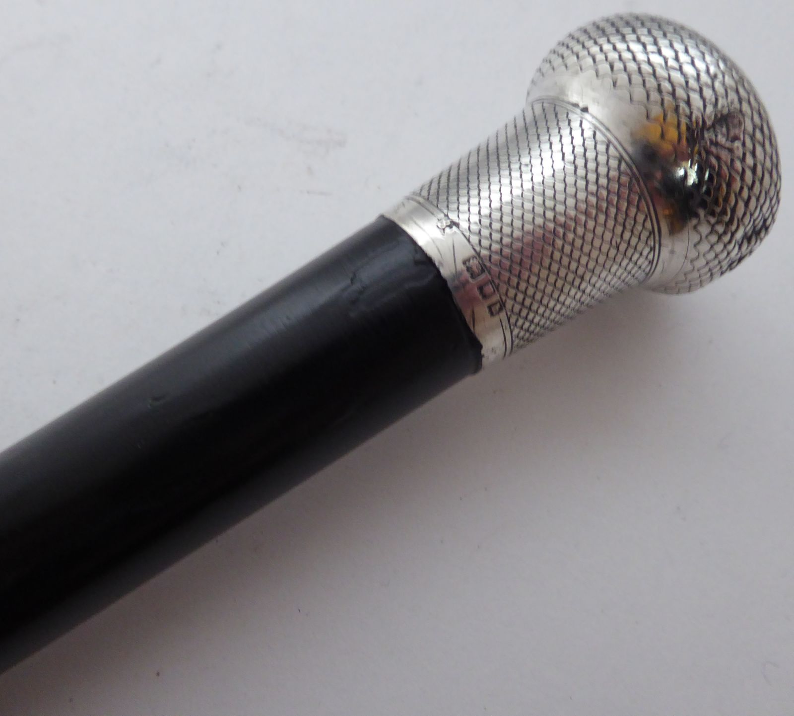 London 1923 Walking Stick Cane Hallmarked Solid Silver Pommel Ebony Wood Shaft