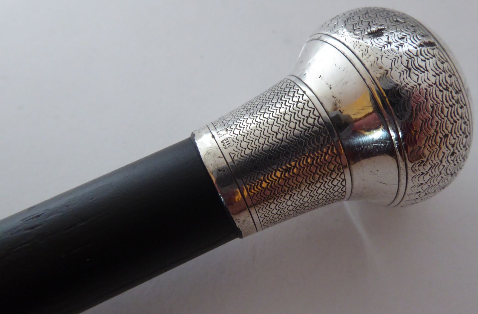 London 1927 Walking Stick Cane Hallmarked Silver Pommel Ebonised Wood Shaft