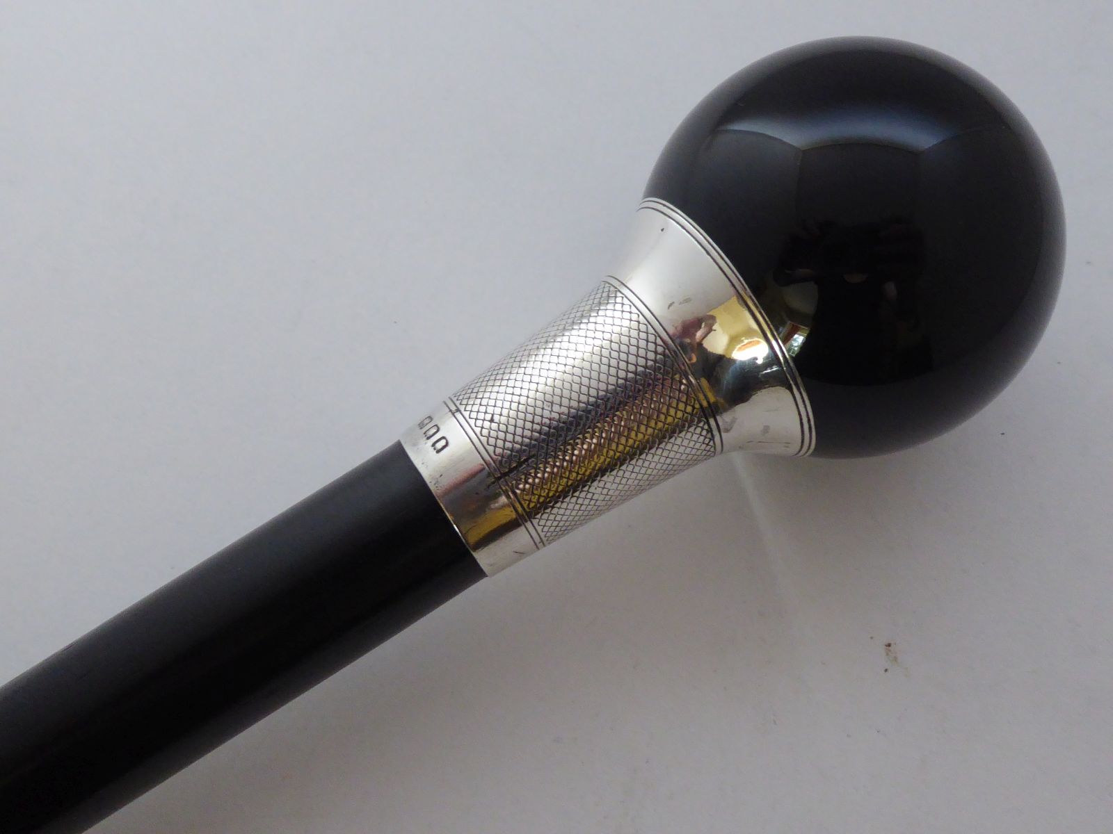 London 1932 Undertakers Walking Stick Cane Hallmarked Silver Ebony Shaft