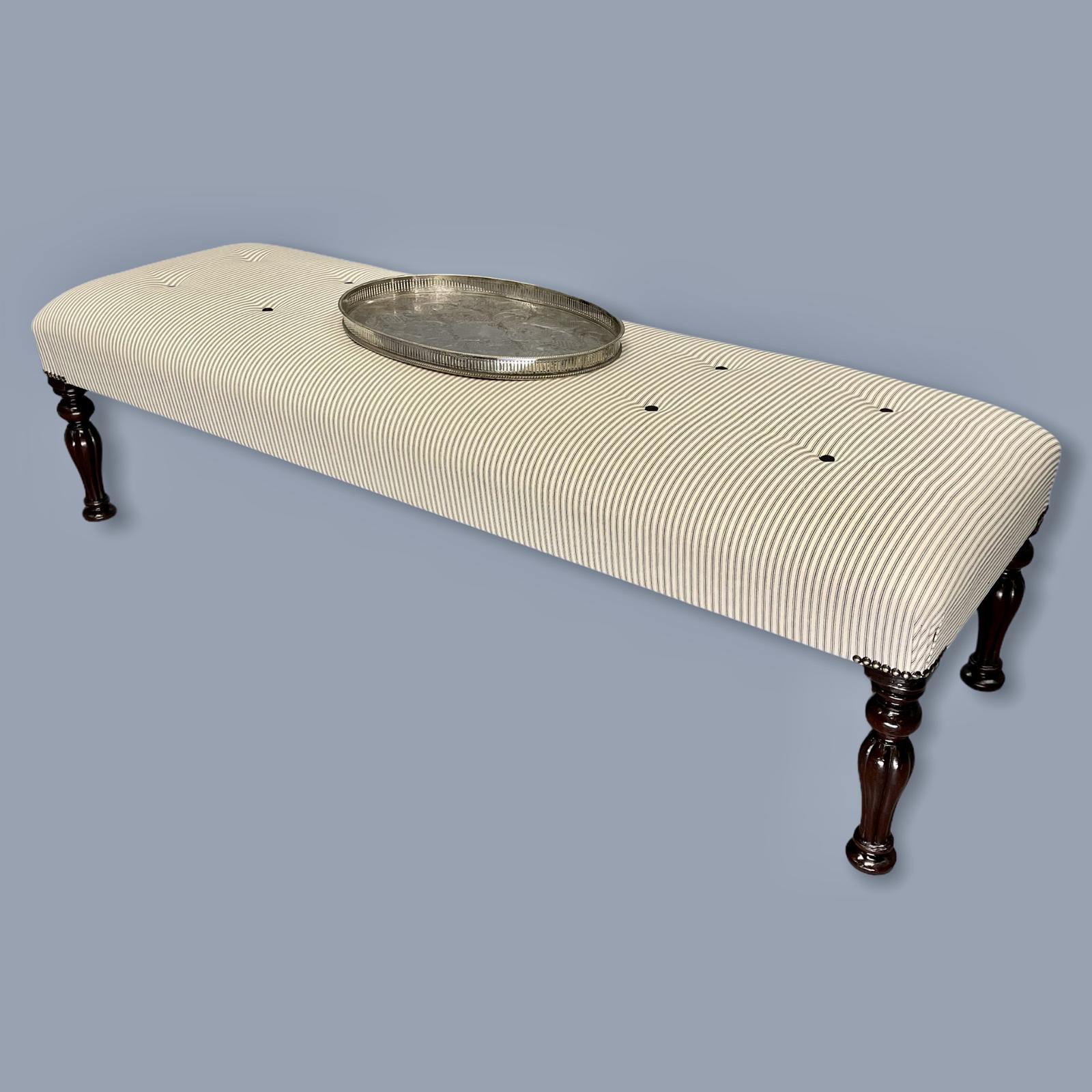 Long and Low Buttoned Footstool in Ticking (1 of 8)
