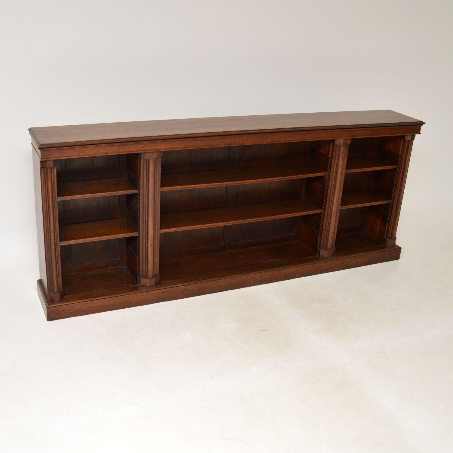 Long Antique Victorian Solid Oak Open   Bookcase (1 of 12)
