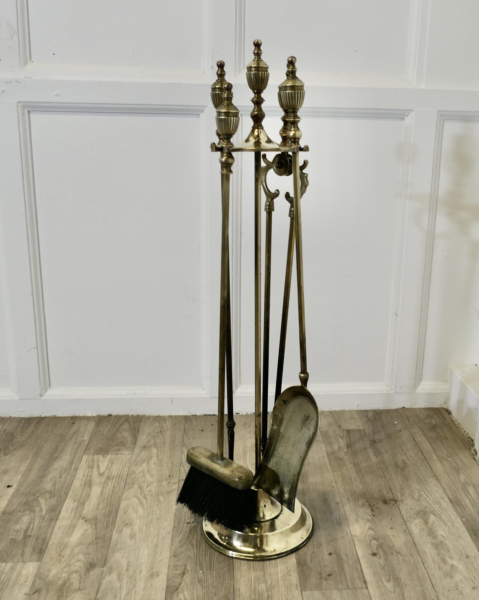 Long Brass Fireside Companion Set, Fireside Tools on Stand