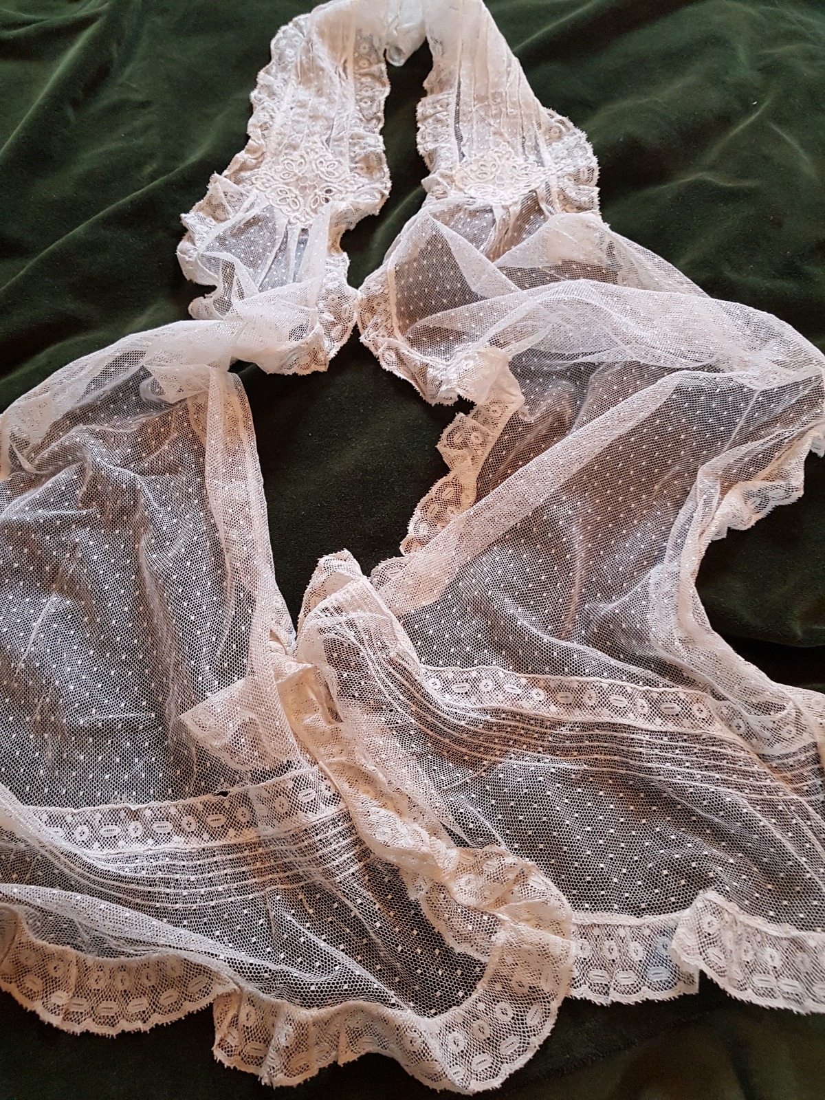 Long, Cream, Edwardian Net & Lace Scarf, Fichu, Hat Protector