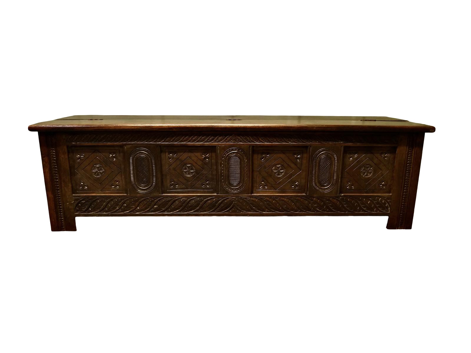 Long Early 19th Century Carved Elm Coffer
