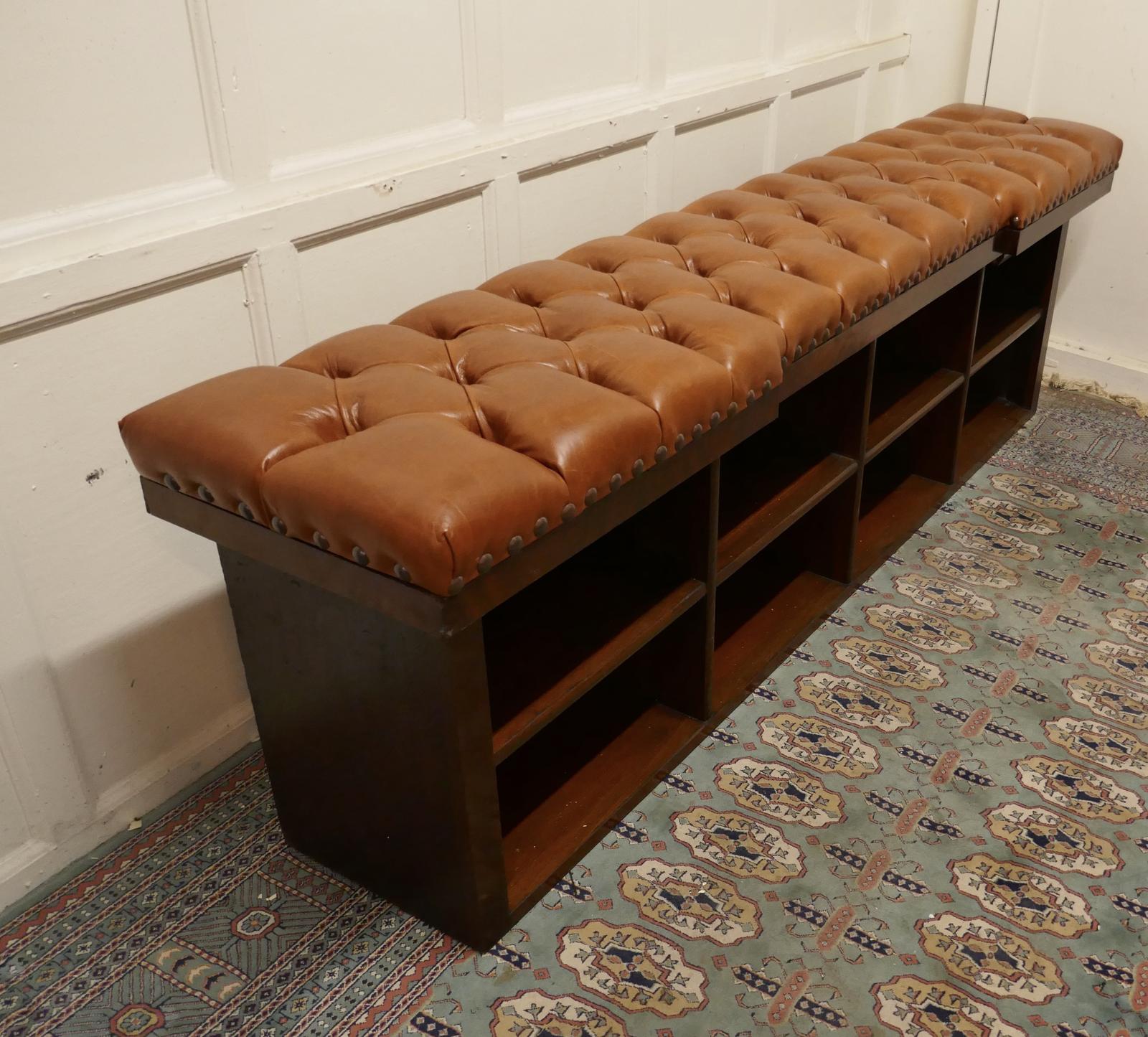 Long Leather Chesterfield Hall Seat Shoe Tidy