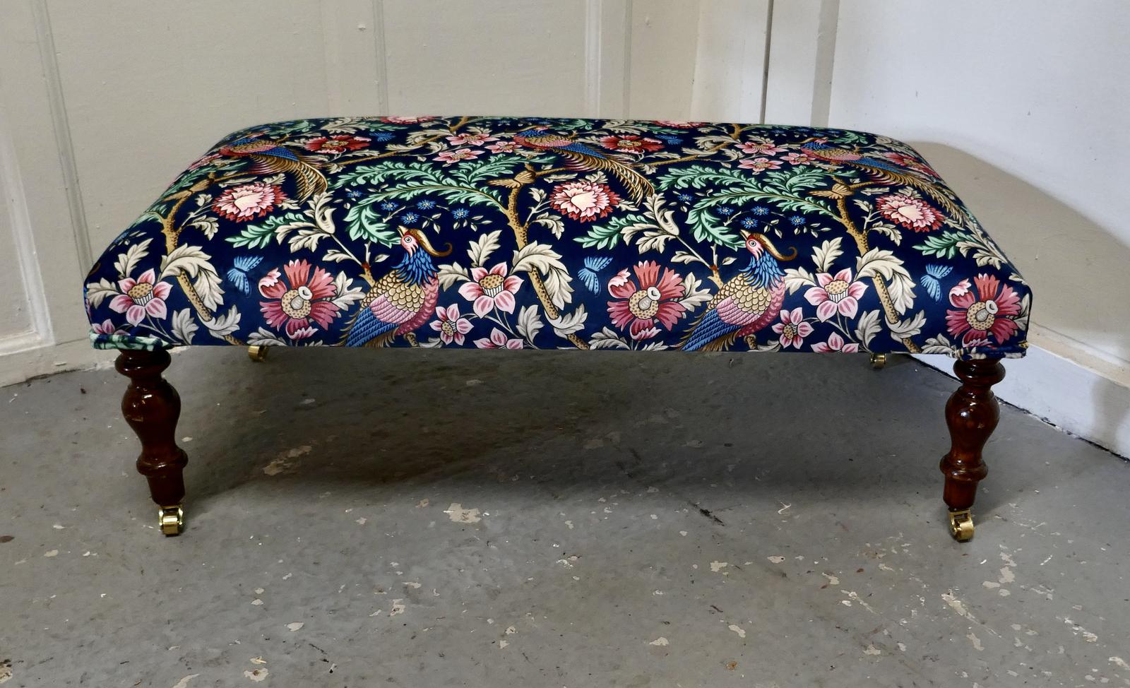 Long Low Stool Upholstered in Navy Liberty William Morris Velvet