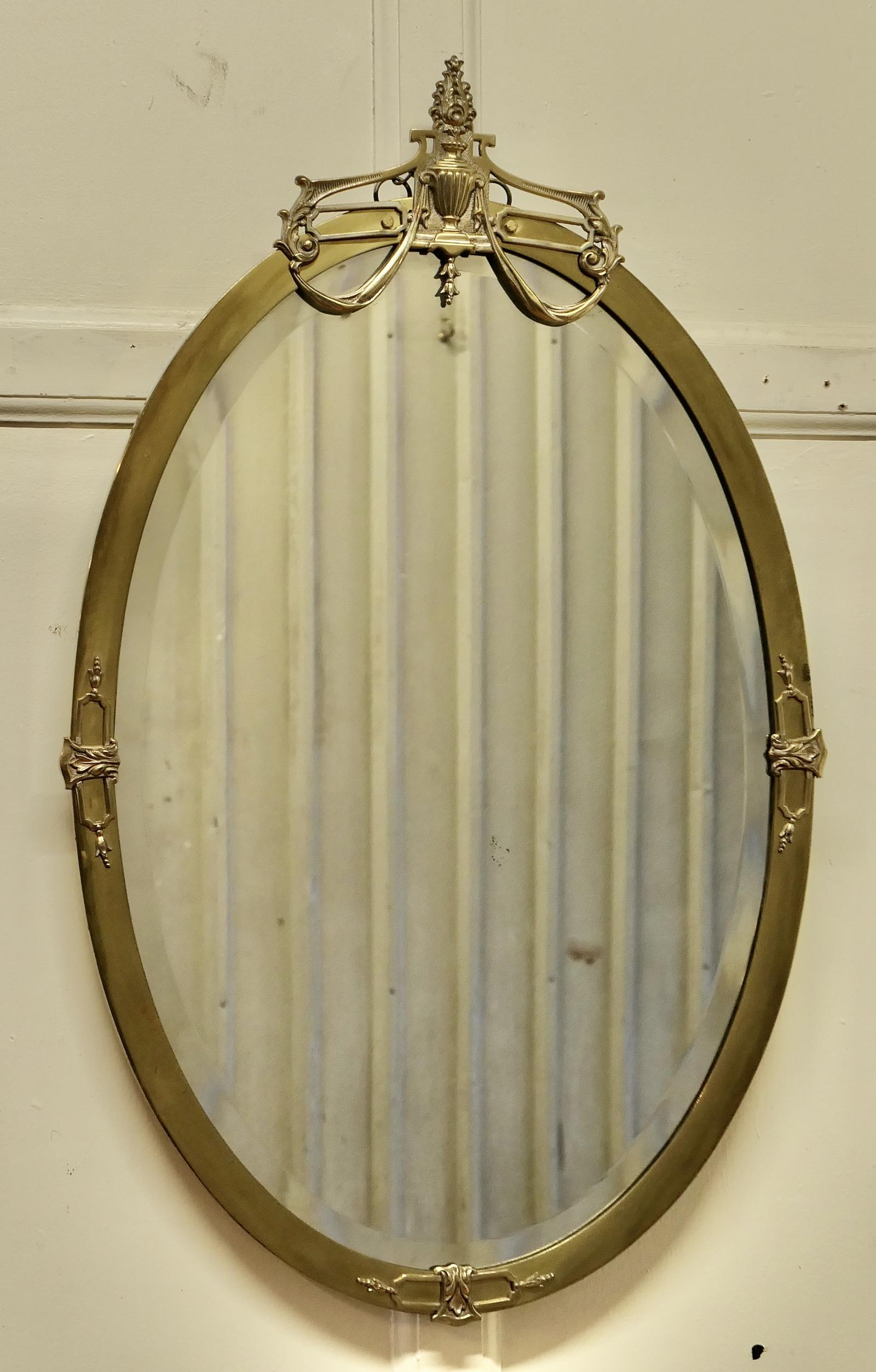 Long Oval Art Deco Gilt Brass Wall Mirror