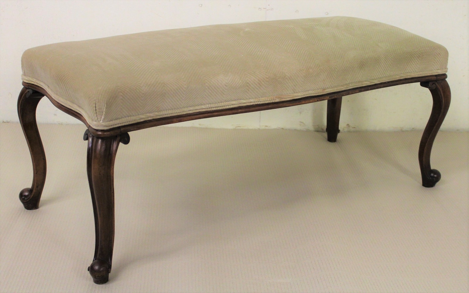 Long Victorian Walnut Upholstered Stool (1 of 1)