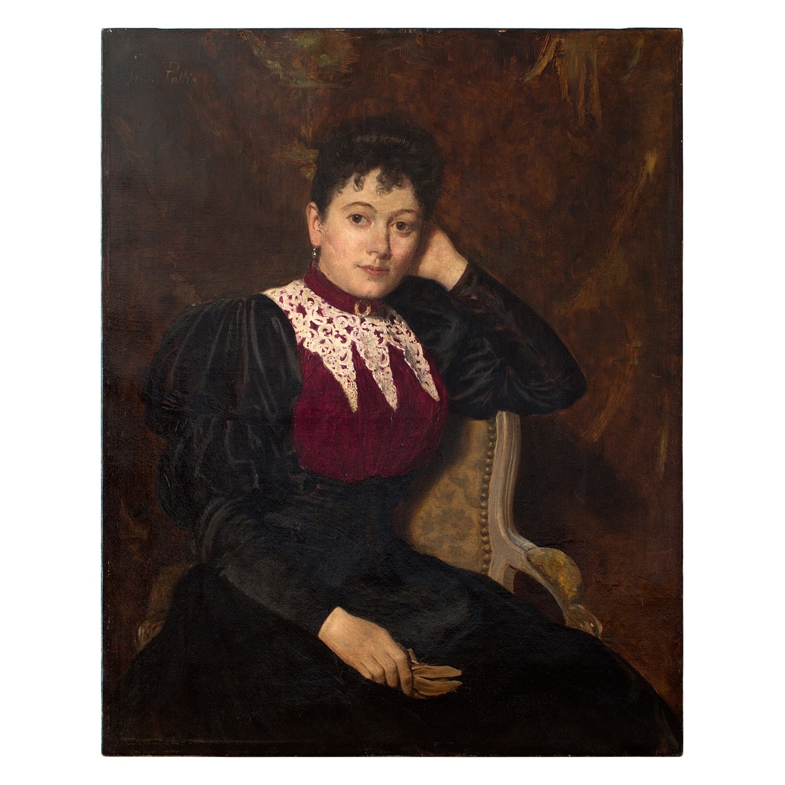 Louis Joseph Pottin, 19th Century Portrait of a Lady in a Red & Black Dress