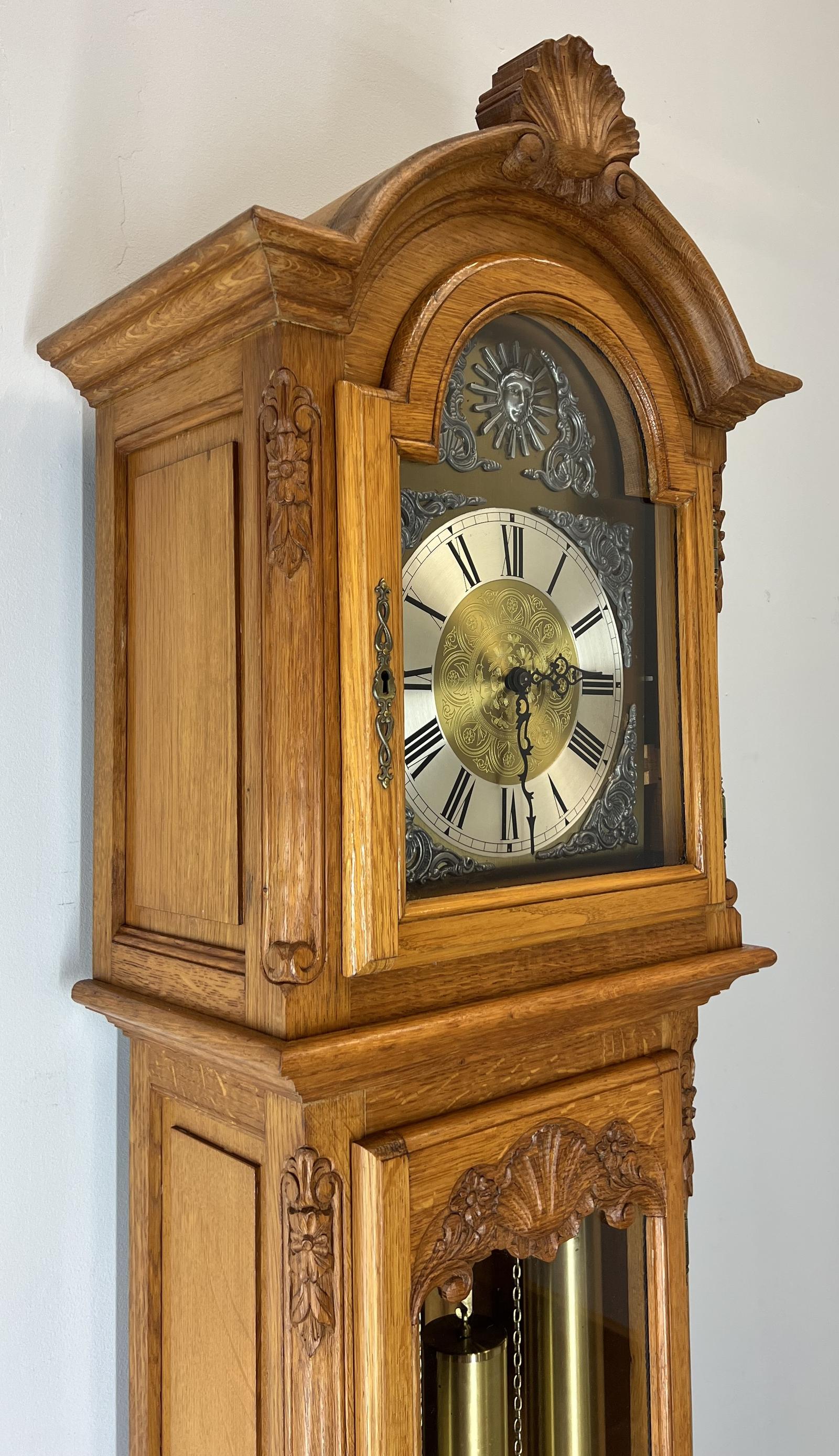 Louis Style Oak Grandfather Clock Vintage 3 Weights Brass Dial – Lot 3864