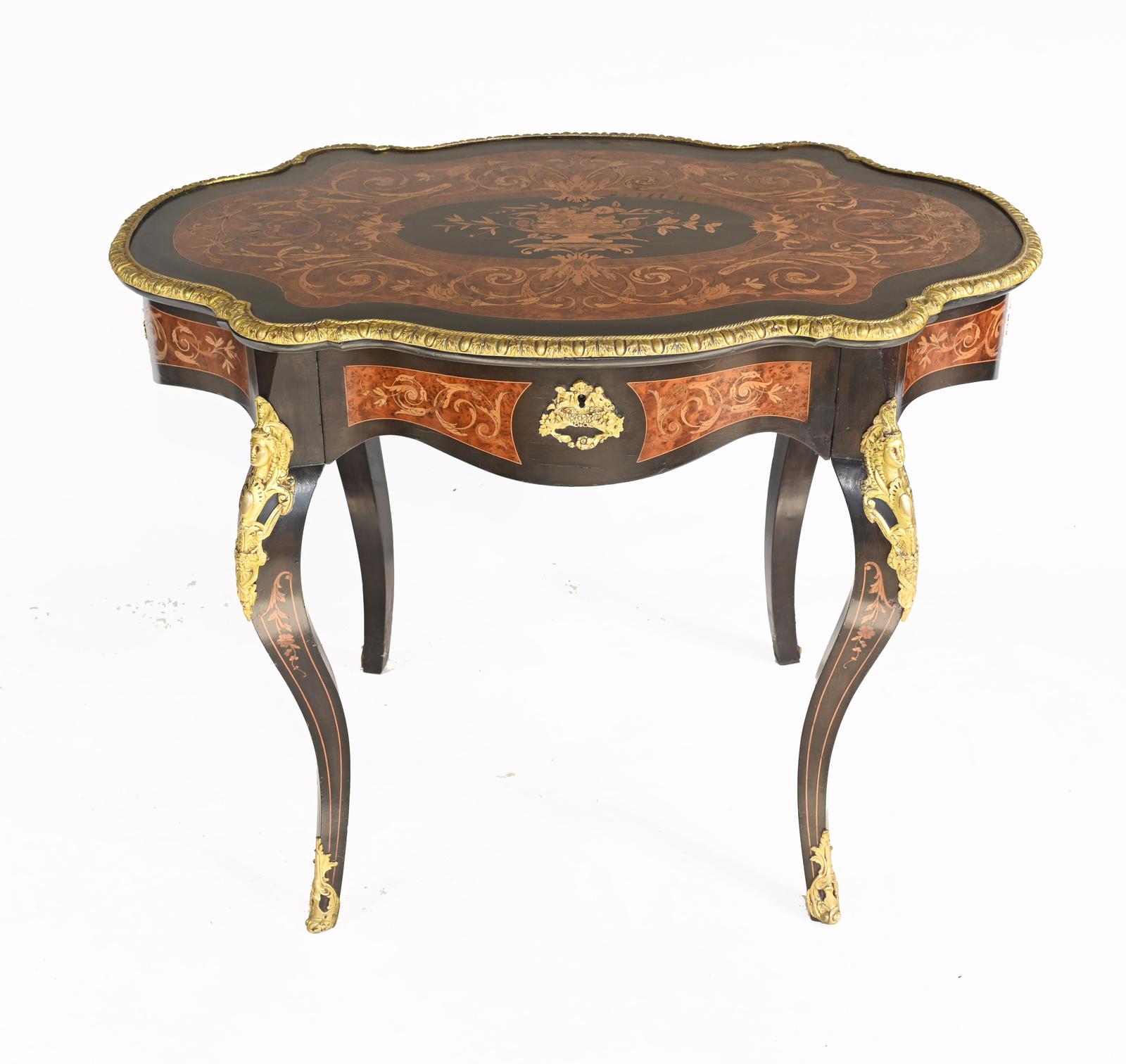 Louis XV Centre Table Marquetry Inlaid Desk c.1880