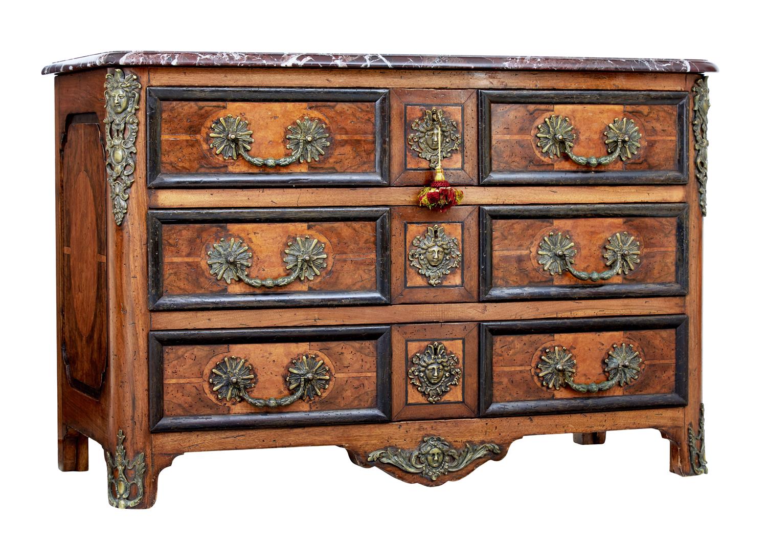 Louis XV Influenced Early 20th Century Walnut Marble Top Commode