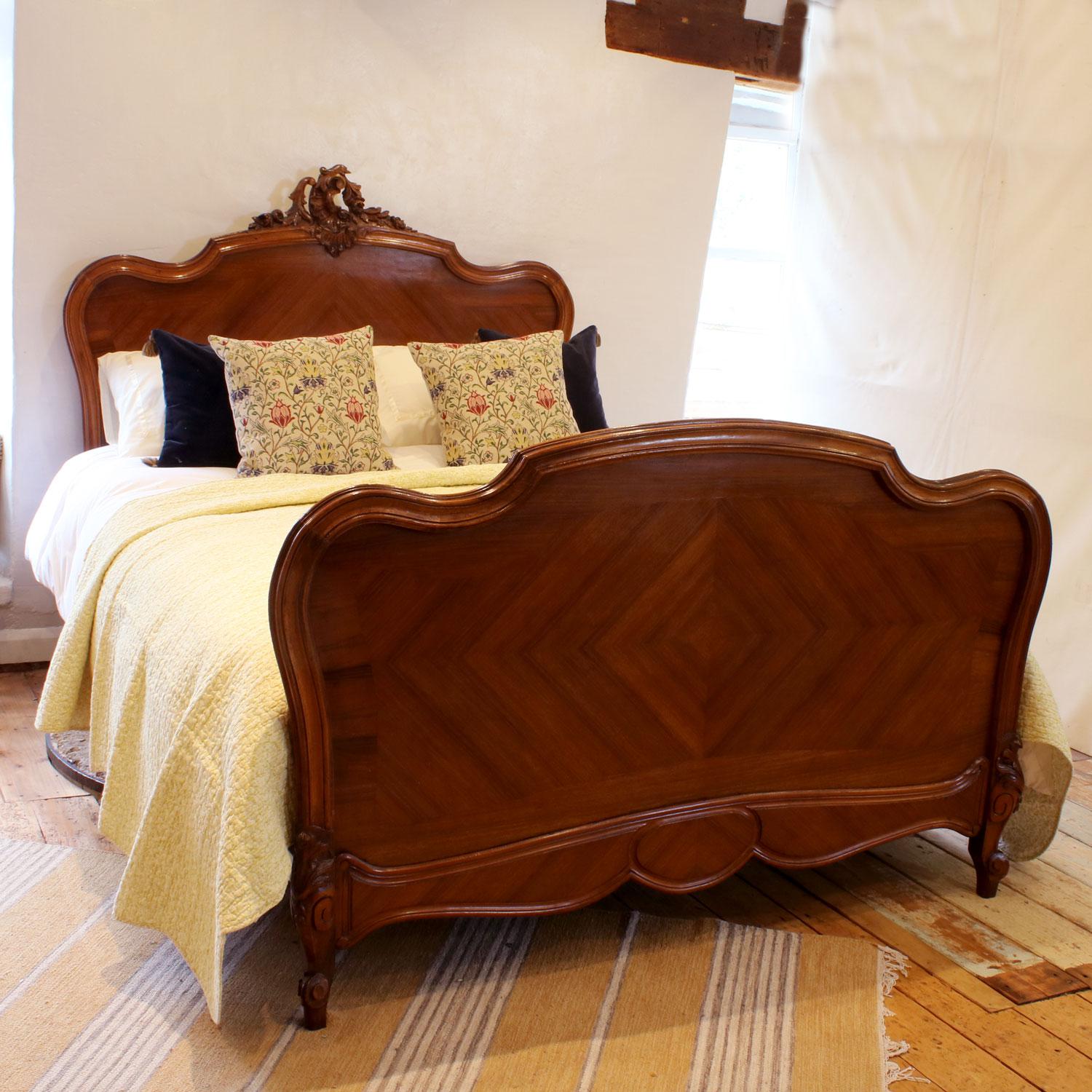 Louis XV King Size Walnut Antique Bed