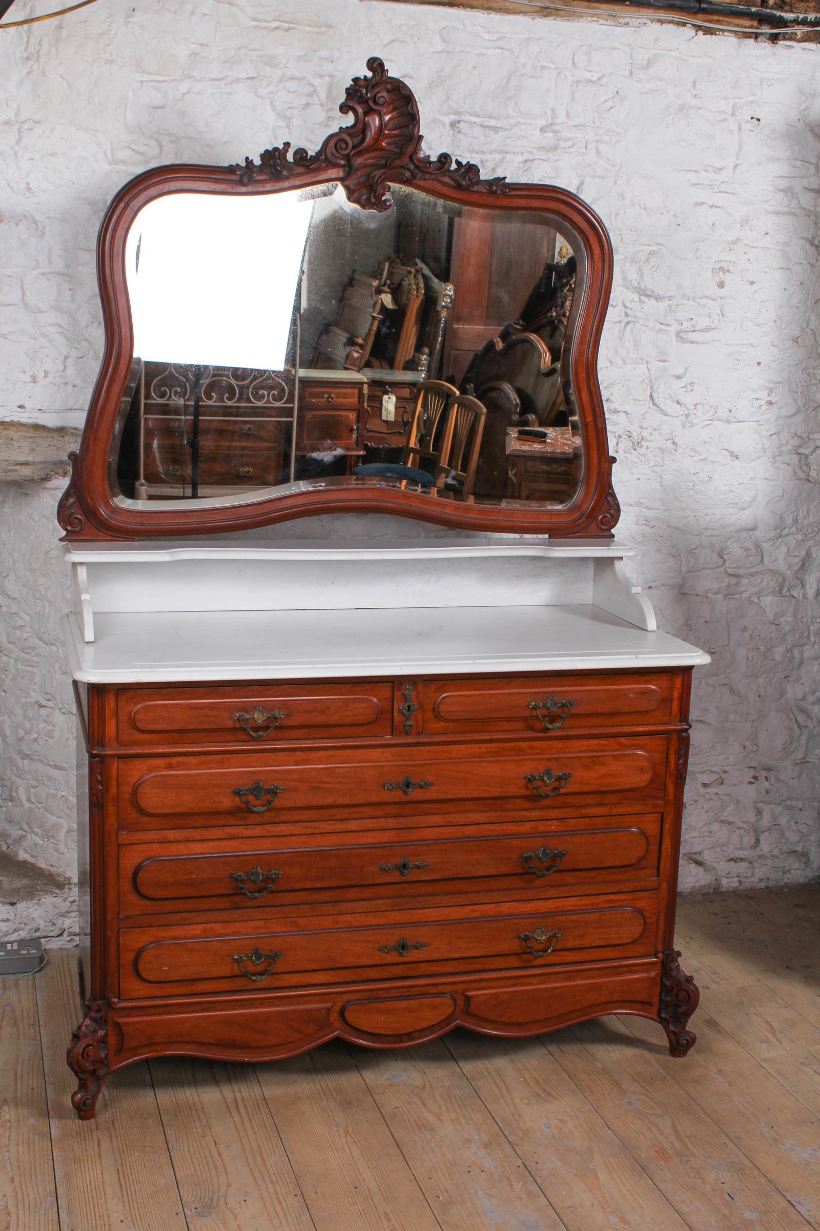 Louis XV Style 5 Drawer Chest of Drawers with Mirror & Marble Top