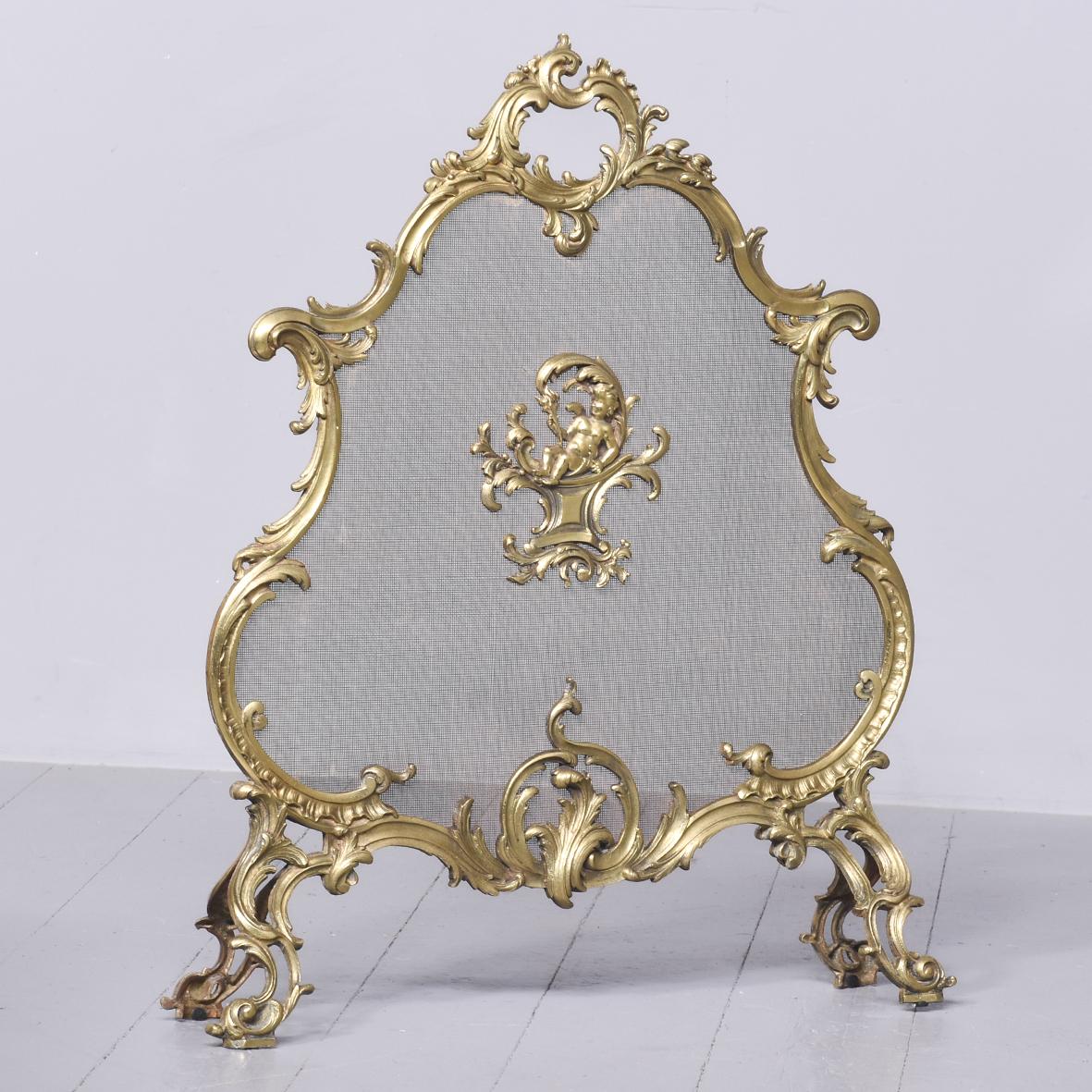 Louis XV Style Cast Brass and Mesh Fire Screen (1 of 7)