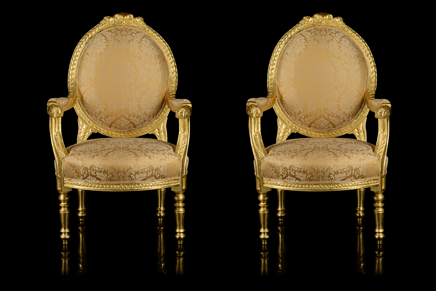 Louis XVI 24ct Gold-Leaf Gilded & Upholstered Armchair
