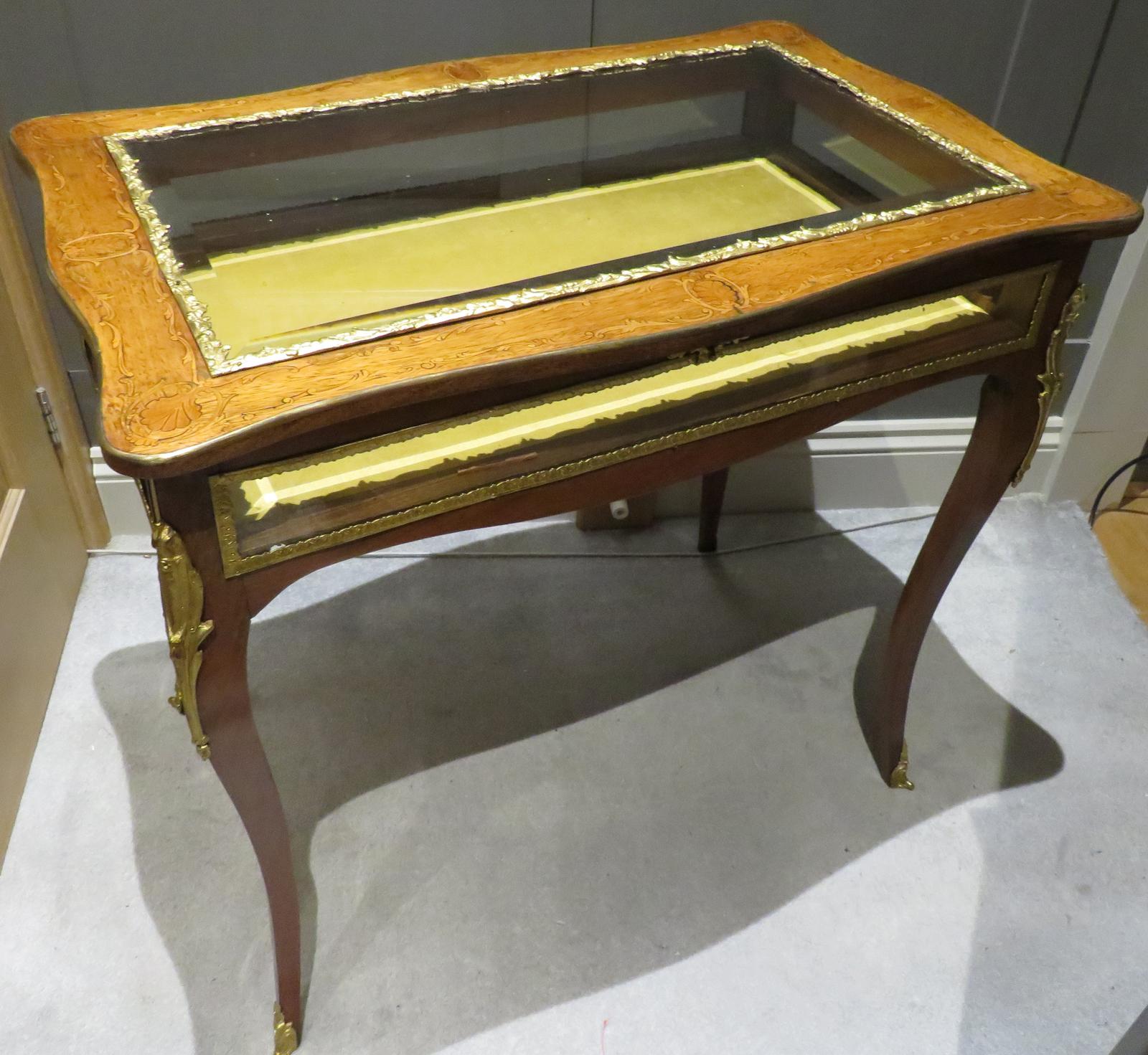 * THIS IS THE FIRST OF TWO LOUIE XVI STYLE BIJOUTERIE DISPLAY TABLES WE ARE LISTING AND ALSO THE LARGEST OF THE TWO