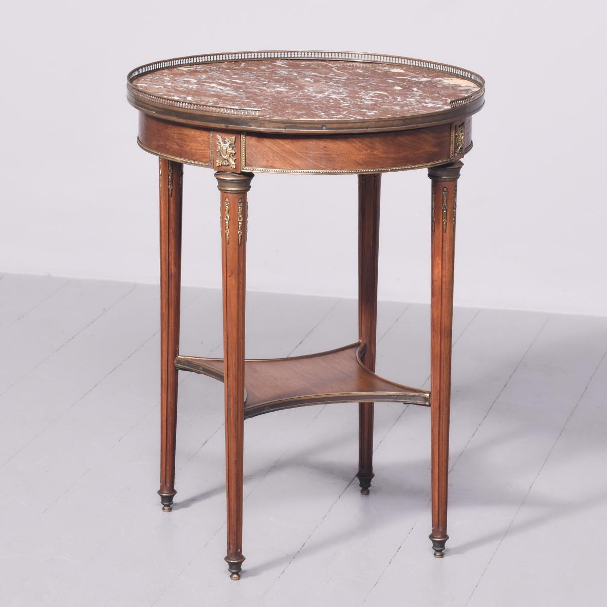 Louis XVI Style French Marble Top Walnut Gueridon Circular Occasional Table (1 of 10)