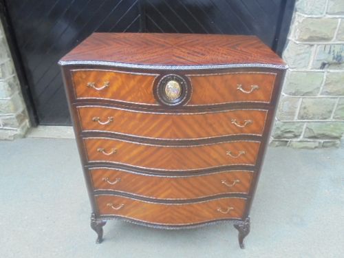 Louis XVI Style Serpentine Mahogany & Satinwood Chest of Drawers c.1920