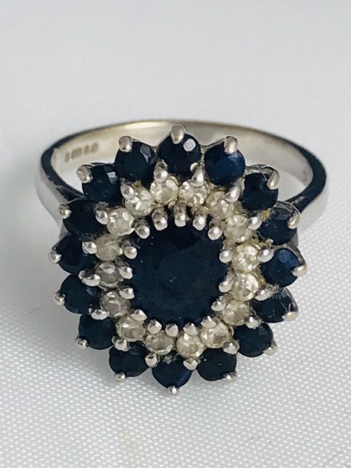 Lovely 18 Carat White Gold Sapphire Cluster Ring