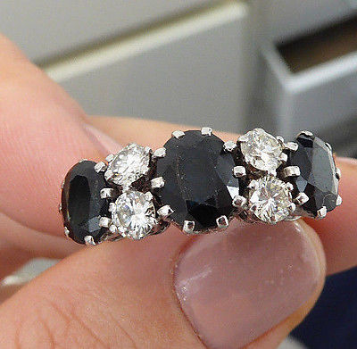 Lovely 18ct Gold 0.8ct Diamond & 2.30ct Sapphire Large Art Deco Ring