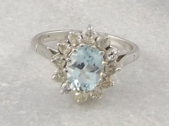 Lovely 18ct White Gold Blue Topaz & Diamond Ring