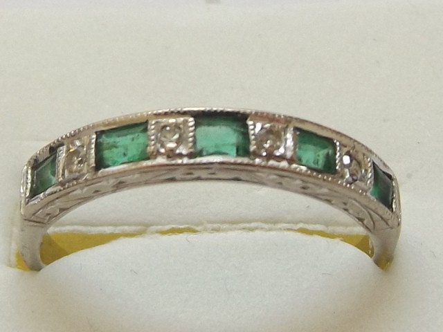 Lovely 18ct White Gold Emerald & Diamond Half Eternity Ring c.1930